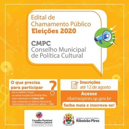 As inscrições deverão ser realizadas até o dia 12 de agosto, demais critérios para participar do processo eleitoral do CMPC é necessário acessar o Edital de Chamamento disponível no site da Prefeitura de Ribeirão Pires. Outras informações podem ser obtidas através do telefone: 4824-1781.